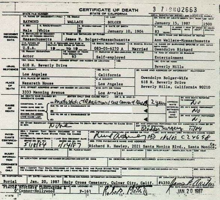 1987 Acte de décès (Los Angeles, Californie, USA)