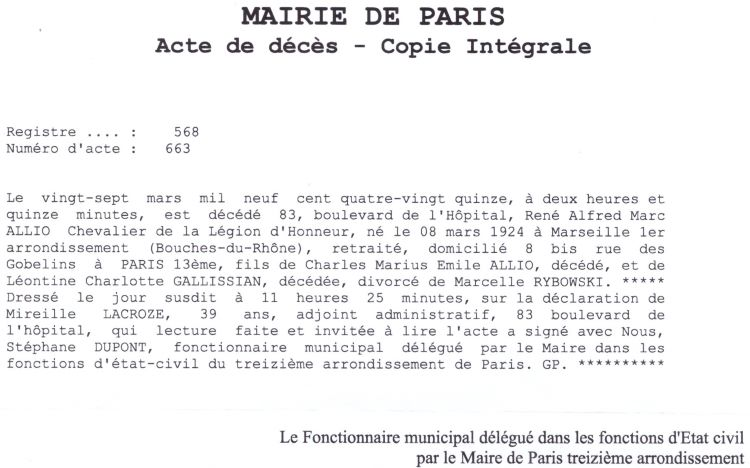 1995 Acte de décès (Paris 13ème, France)