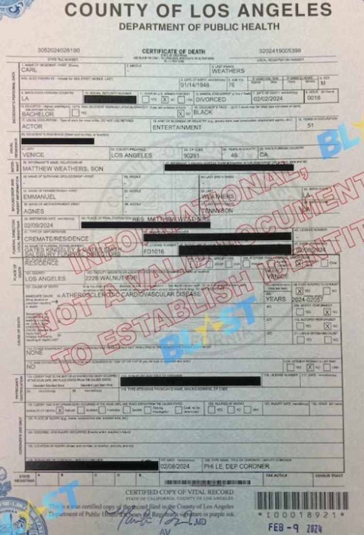 2024 Acte de décès (Los Angeles, Californie, USA)
