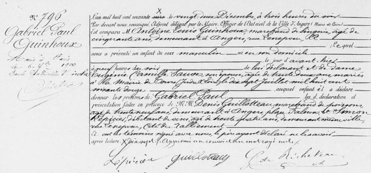 1877 Acte de naissance (Angers, France)