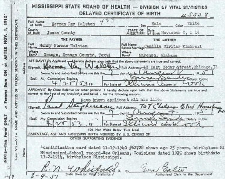 1914 Acte de naissance (Laurel, Mississippi, USA)