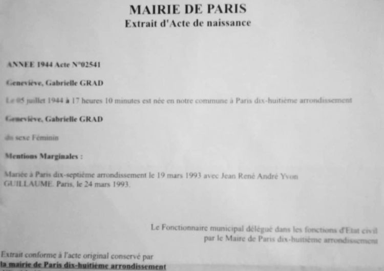 1944 Acte de naissance (Paris 18ème, France)