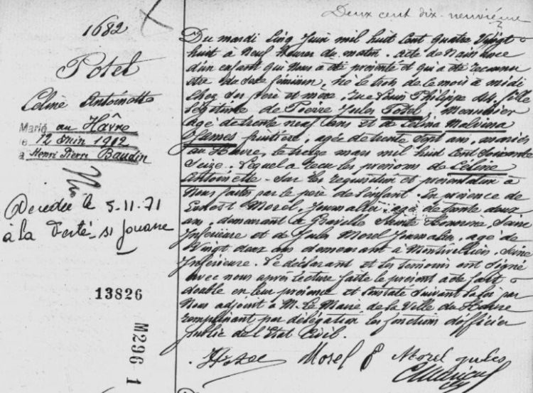 1888 Acte de naissance (Le Havre, France)