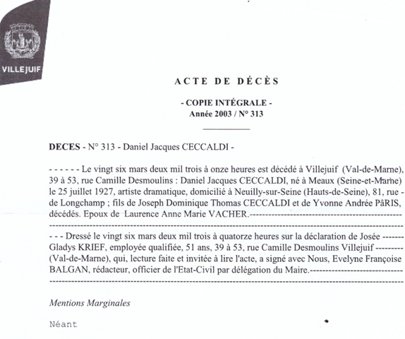 2003 Acte de décès (Villejuif, France)