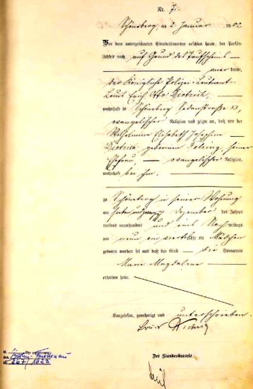 1901 Acte de naissance (Schöneberg, Empire Allemand)
