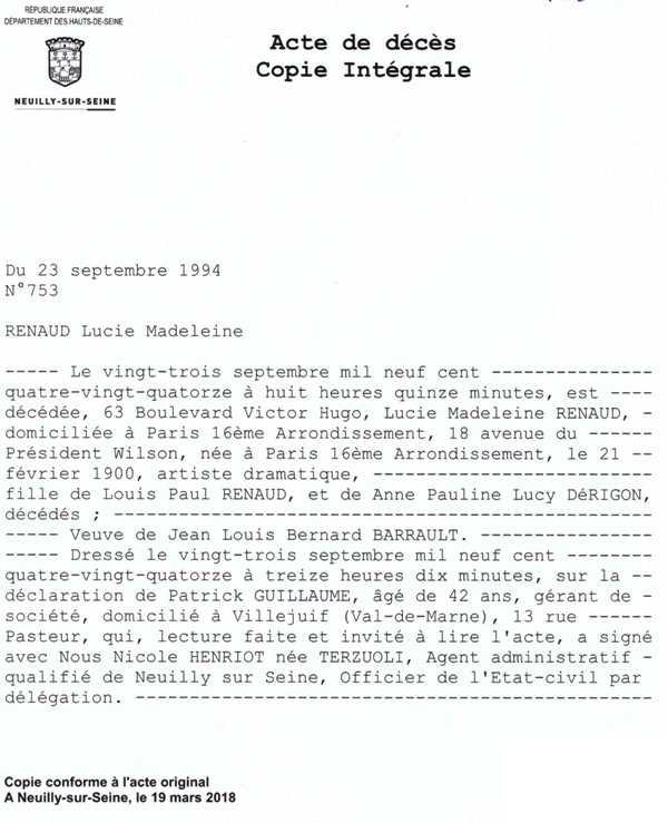 1994 Acte de décès (Neuilly-sur-Seine, France)