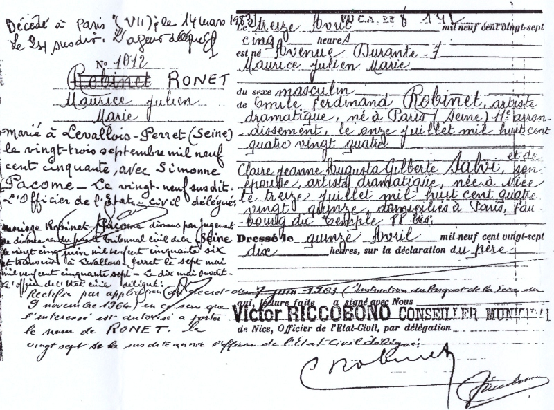1927 Acte de naissance (Nice, France)