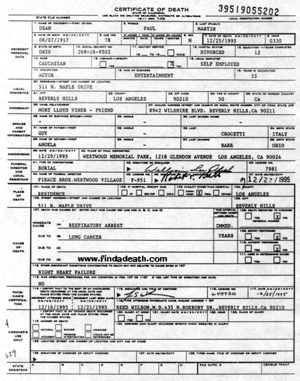 1995 Acte de décès (Beverly Hills, Californie, USA)