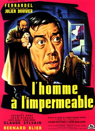 ![]() 1956 L’homme à l’imperméable – de Julien Duvivier avec Fernandel, Jacques Duby & Bernard Blier | ![]() 1957 Le coin tranquille – de Robert Vernay avec Dany Robin, Marie Daëms, Louis Velle & Jacques Jouanneau | ![]() 1958 Le petit prof – de Carlo Rim avec Darry Cowl, Yves Robert, Francis Blanche & René Blancard | ![]() 1959 Maigret et l’affaire Saint-Fiacre – de Jean Delannoy avec Jean Gabin, Valentine Tessier & Michel Auclair | ||