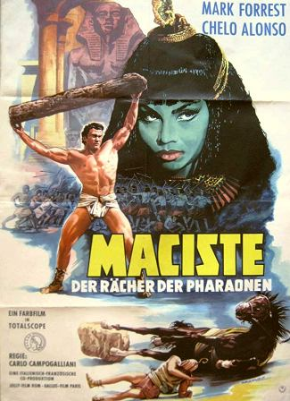En 1958, Chelo Alonso fait ses débuts dans «Sous le signe de Rome» de Guido Brignone. Un rôle secondaire, mais son numéro de danse chargée d’érotisme vole presque la vedette à Anita Ekberg en Zénobie, la reine de Palmira qui séduit Georges Marchal. Elle enchaîne avec «La terreur des barbares» (1959) de Carlo Campogalliani, où elle est la fille d’un chef barbare qui tombe amoureuse de Steve Reeves le chef des rebelles, dans «La vengeance du Sarrazin» (1959) de Piero Pierotti, elle est la Princesse Miriam auprès de Lex Barker, qu’elle retrouve dans «La terreur du masque rouge» (1959) de Luigi Capuano, elle y est Kerima la gitane. Elle est encore la courageuse Tania dans «La reine des barbares» (1960) de Sergio Grieco avec Jacques Sernas et Folco Lulli, et la maléfique Reine Smedes dans «Le géant de la vallée des rois» (1960) de Carlo Campogalliani avec Mark Forest dans le rôle de Maciste.