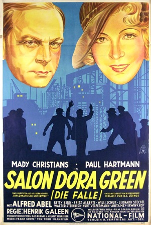 ![]() 1923 Les Nibelungen (die Nibelungen) de Fritz Lang avec Margarete Schön & Theodor Loos | ![]() 1927 Les onze diables (die elf teufel) de Carl Boese & Zoltan Korda avec Gustav Fröhlich, Evelyn Holt & Lissy Arna | ![]() 1928 La Carmen de Saint-Pauli (0die Carmen von St. Pauli) de Erich Waschnech avec Jenny Jugo & Willy Fritsch | ![]() 1932 Salon Dora Green – de Henrik Galeen avec Mady Christians, Paul Hartmann, Alfred Abel & Betty Bird | ||