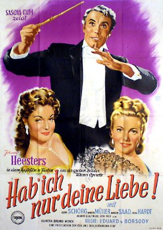 ![]() 1947 Valse céleste (der himmlische walzer) de Géza von Cziffra avec Curd Jürgens & Paul Hubschmid | ![]() 1953 Chanson immortelle (hab’ ich nur deine liebe) de Eduard von Borsody avec Johannes Heesters & Margit Saad | ![]() 1955 Mam’zelle Cri-Cri (die deutschmeister) de Ernst Marischka avec Romy Schneider & Magda Schneider | ![]() 1971 L’amour n’est qu’une parole (liebe ist nur ein wort) de Alfred Vohrer avec Judy Winter & Herbert Fleischmann | ||