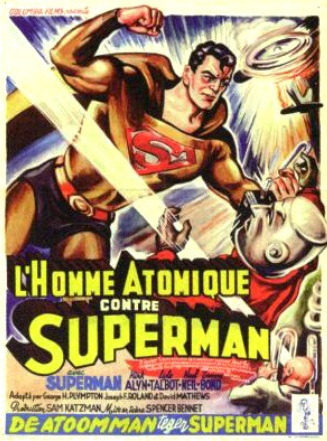 L’homme atomique contre Superman ( Atom man vs Superman ) de Spencer Gordon Bennet avec Kirk Alyn Sérial en 15 épisodes 1 : Superman flies again 2 : Atom Man appears 3 : Ablaze in the sky 4 : Superman meats Atom Man 5 : Atom Man tricks Superman 6 : Atom Man’s challenge 7 : At the mercy of Atom Man 8 : Into the empty doom 9 : Superman crashes through 10 : Atom Man’s heat ray 11 : Luthor’s strategy 12 : Atom Man strikes 13 : Atom Man’s flying saucer 14 : Rocket of vengeance 15 : Superman saves the Universe |