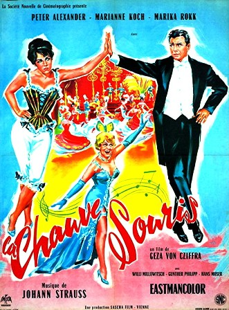 ![]() 1955 Mam’zelle Cri-Cri (die deutschmeister) de Ernst Marischka avec Romy Schneider & Hans Moser | ![]() 1957 Le comte de Luxembourg (der graf von Luxemburg) de Werner Jacobs avec Renate Holm & Gerhard Riedmann | ![]() 1958 Lixie (im prater blüh’n wieder die bäume) de Hans Wolff avec Johanna Matz & Gerhard Riedmann | ![]() 1961 La chauve-souris (die fledermaus) de Géza von Cziffra avec Marianne Koch & Peter Alexander | ||