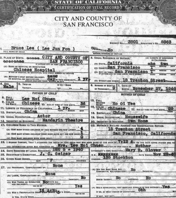 1940 Acte de naissance (San Francisco, Californie, USA)