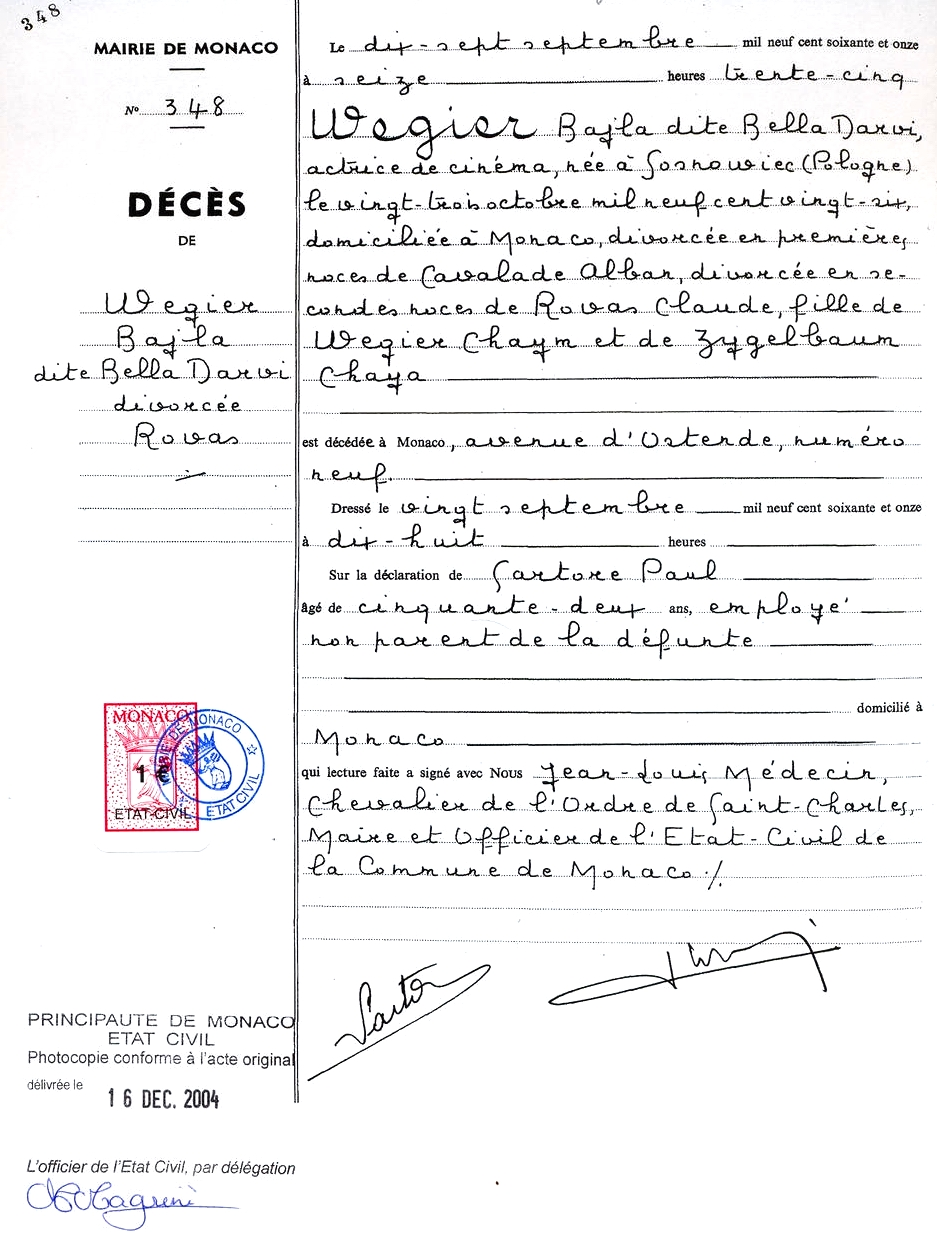 1971 Acte de décès (Monaco, Principauté de Monaco)