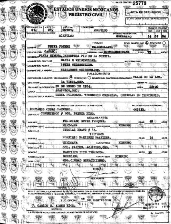 1984 Acte de décès (Acapulco, Guerrero, Mexique)