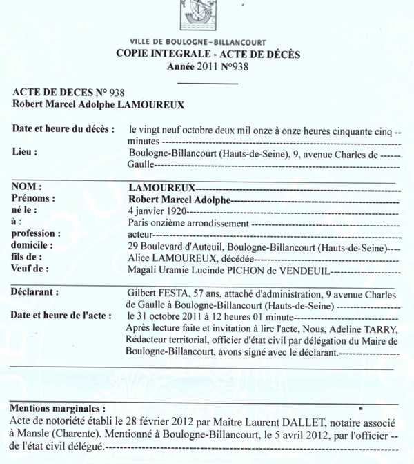 2011 Acte de décès (Boulogne-Billancourt, France)