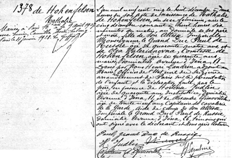 1905 Acte de naissance (Paris 16ème, France)