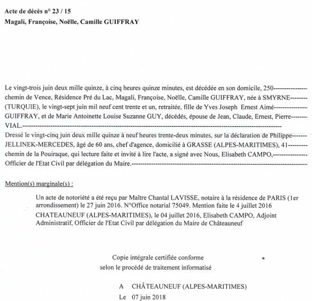 2015 Acte de décès (Châteauneuf-Grasse, France)