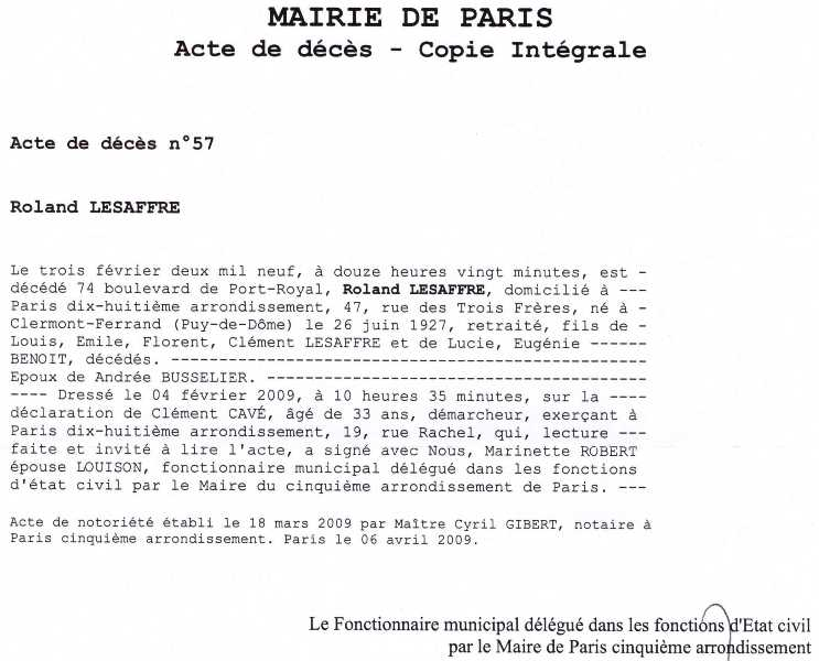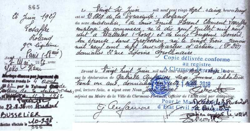 1927 Acte de naissance (Clermont-Ferrand, France)
