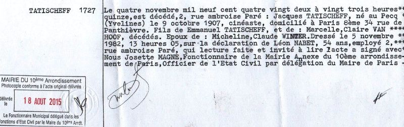 1982 Acte de décès (Paris 10ème, France)