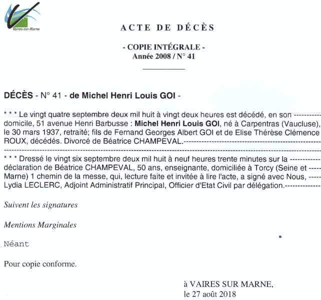 2008 Acte de décès (Vaires-sur-Marne, France)