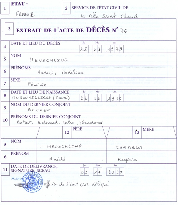 1979 Acte de décès (La Celle Saint-Cloud, France)
