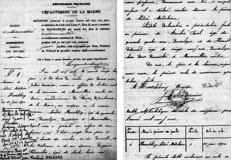 1900 Acte de naissance (Moronvilliers, France)