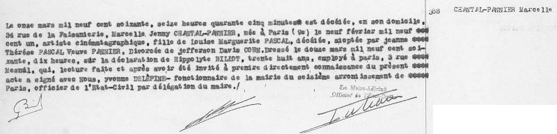1960 Acte de décès (Paris 16ème, France)