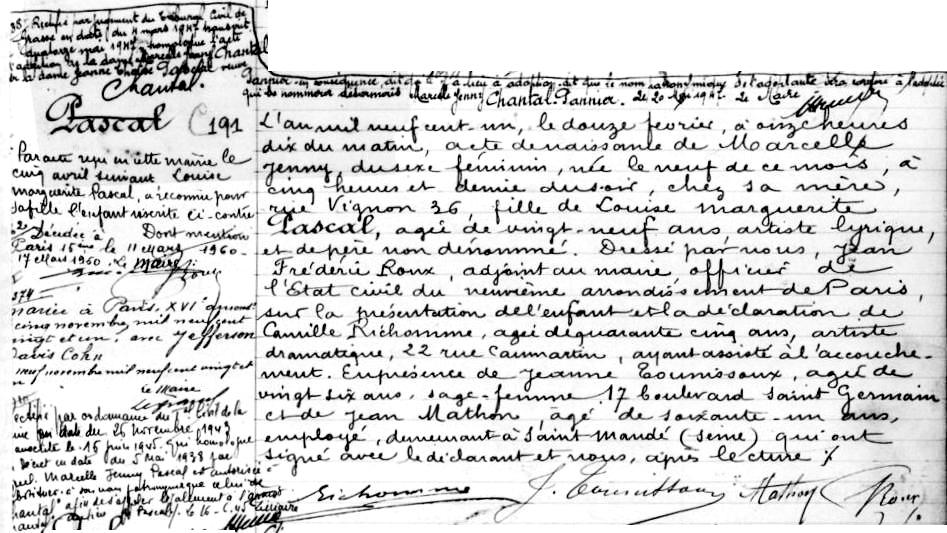1901 Acte de naissance (Paris 9ème, France)