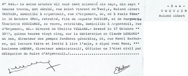 1977 Acte de décès (Argenteuil, France)