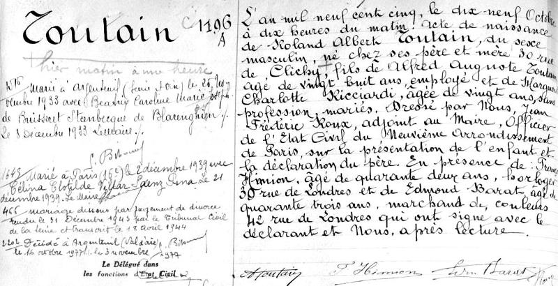 1905 Acte de naissance (Paris 9ème, France)