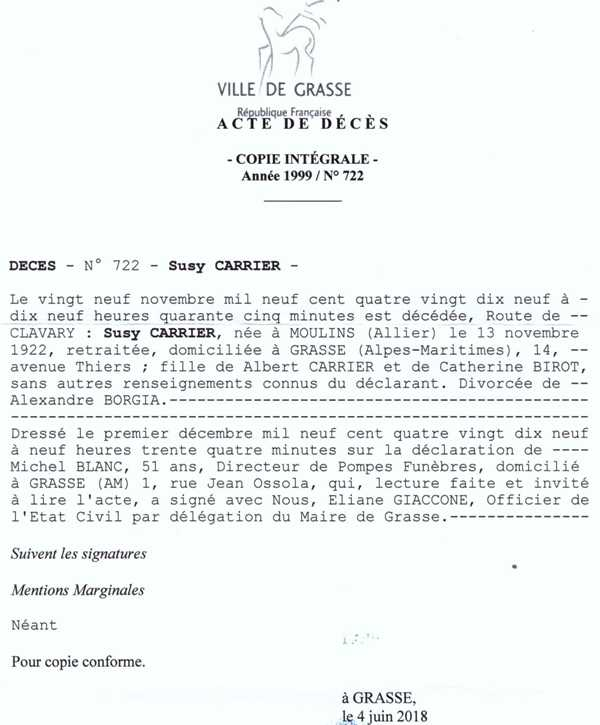 1999 Acte de décès (Grasse, France)