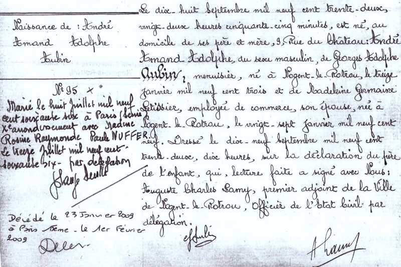 1932 Acte de naissance (Nogent-le Rotrou, France)