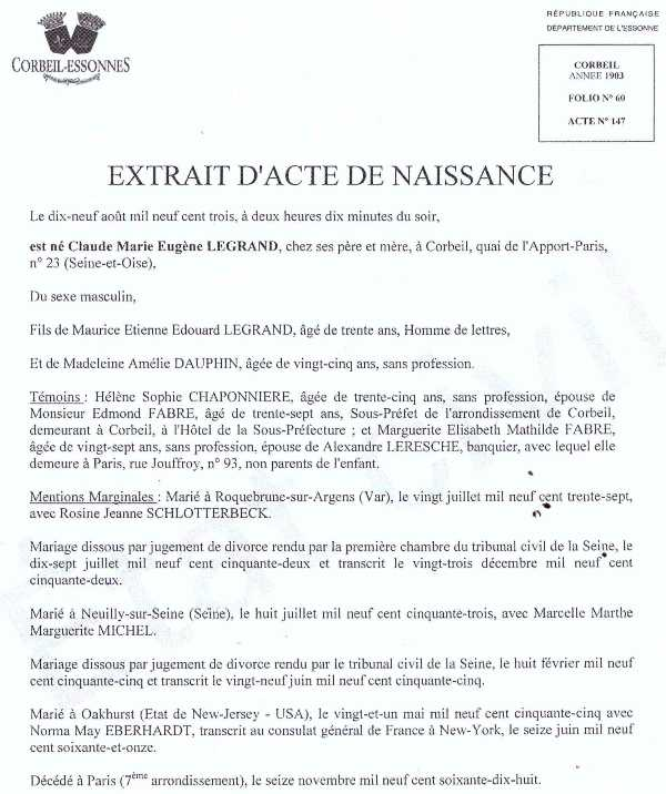 1903 Acte de naissance (Corbeil, France)