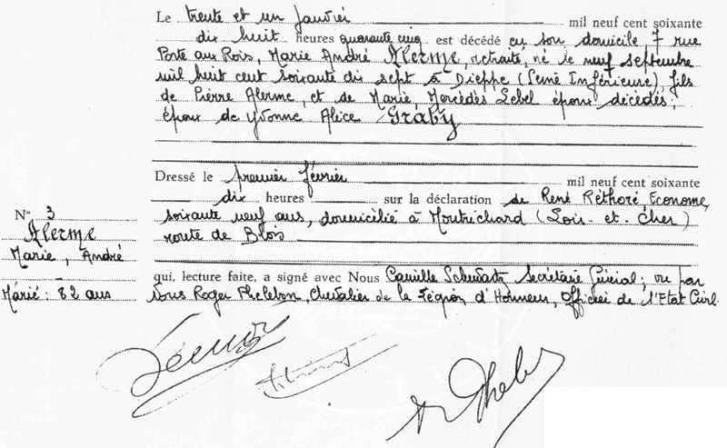 1960 Acte de décès (Montrichard, France)