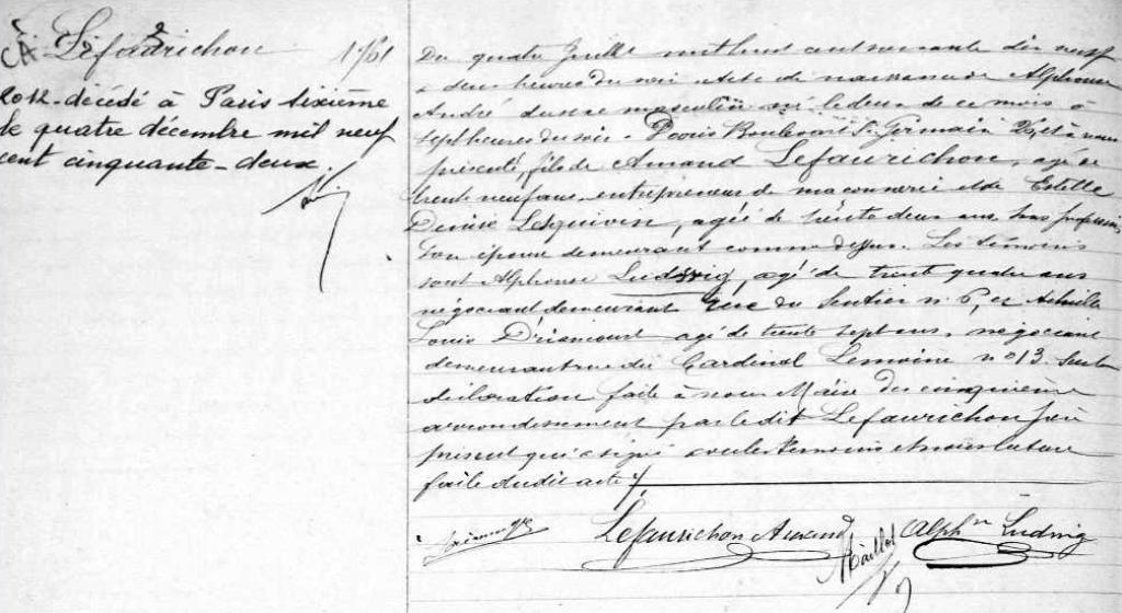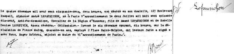 1952 Acte de décès (Paris 6ème, France)