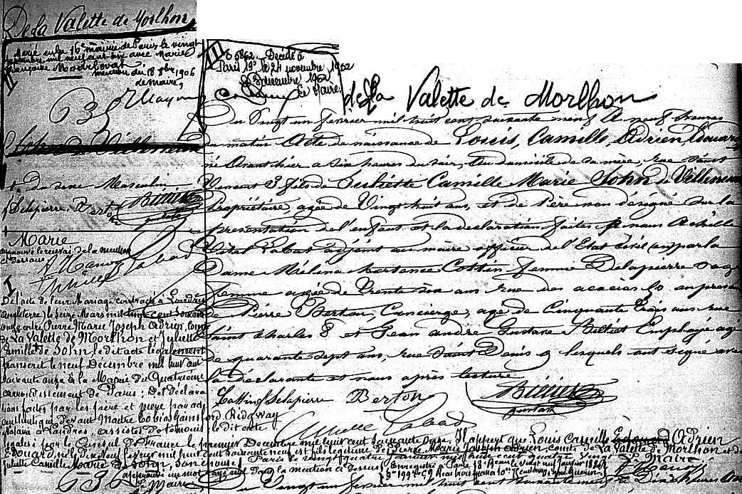 1869 Acte de naissance (Paris 18ème, France)