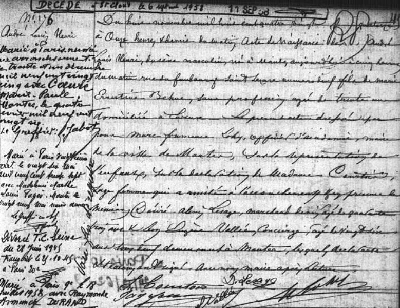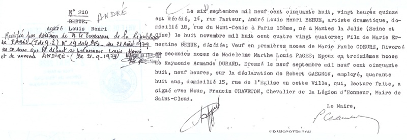 1958 Acte de décès (Saint-Cloud, France)