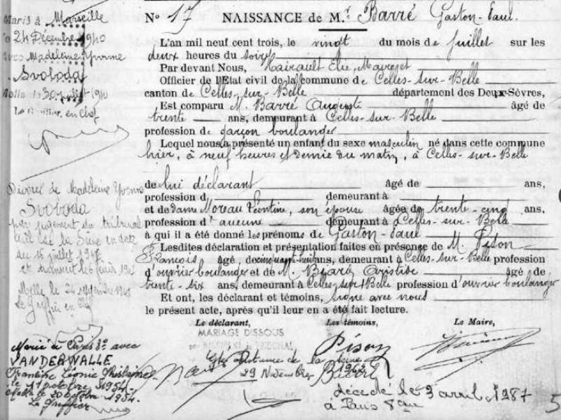 1903 Acte de naissance (Celles-sur-Belle, France)
