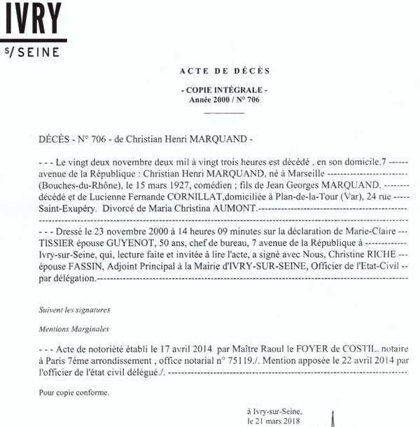 2000 Acte de décès (Ivry-sur-Seine, France)
