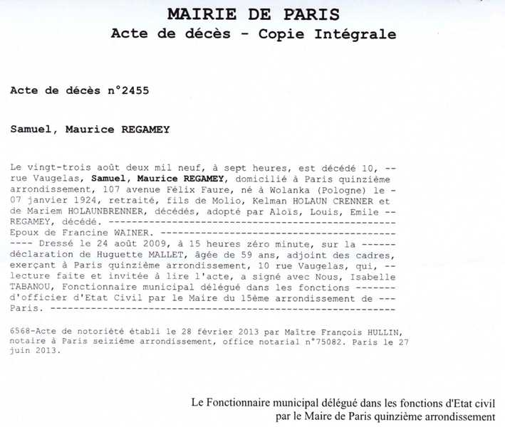 2009 Acte de décès (Paris, France)