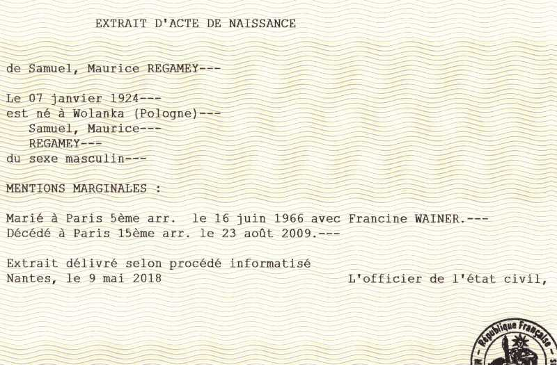 1924 Acte de naissance (Wolanka, Pologne)
