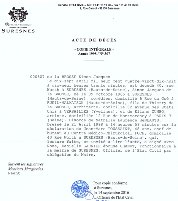 1998 Acte de décès (Suresnes, France)