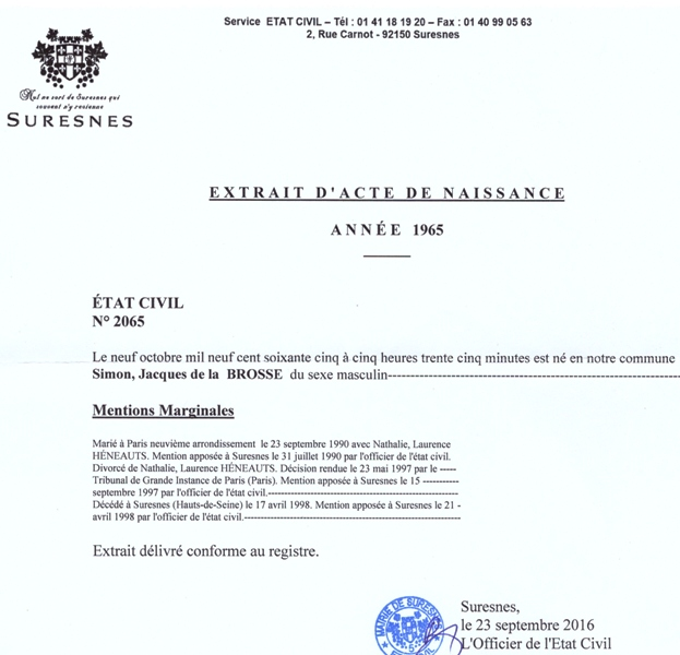 1965 Acte de naissance (Suresnes, France)