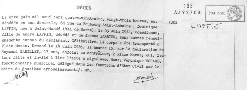 1985 Acte de décès (Paris 12ème, France)
