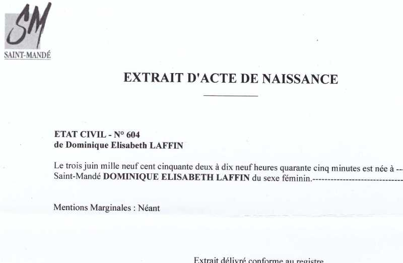 1952 Acte de naissance (Saint-Mandé, France)