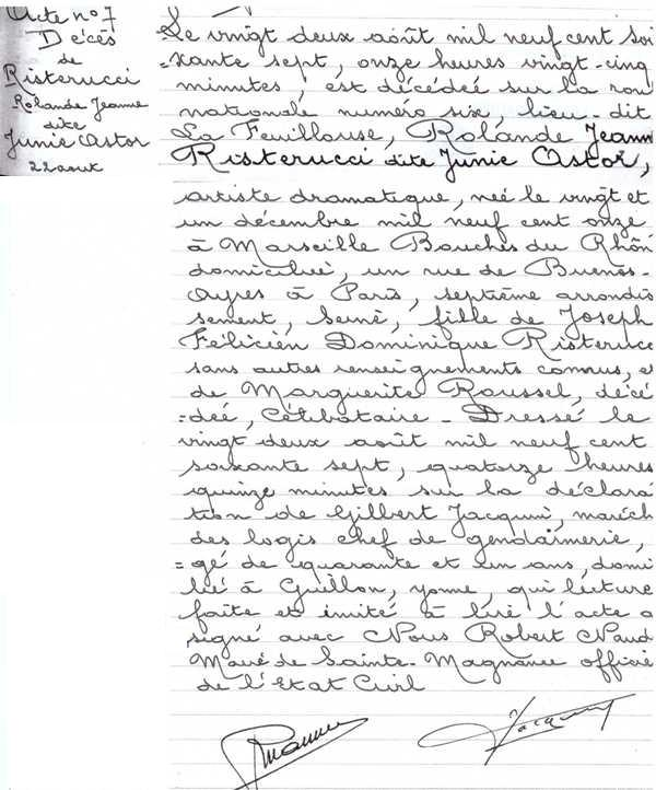 1967 Acte de décès (Sainte-Magnance, France)