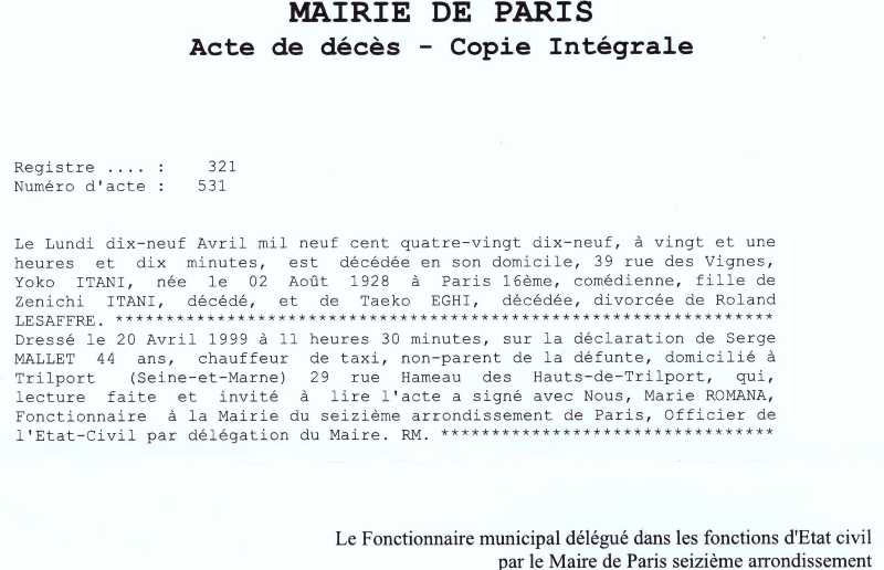 1999 Acte de décès (Paris 16ème, France)